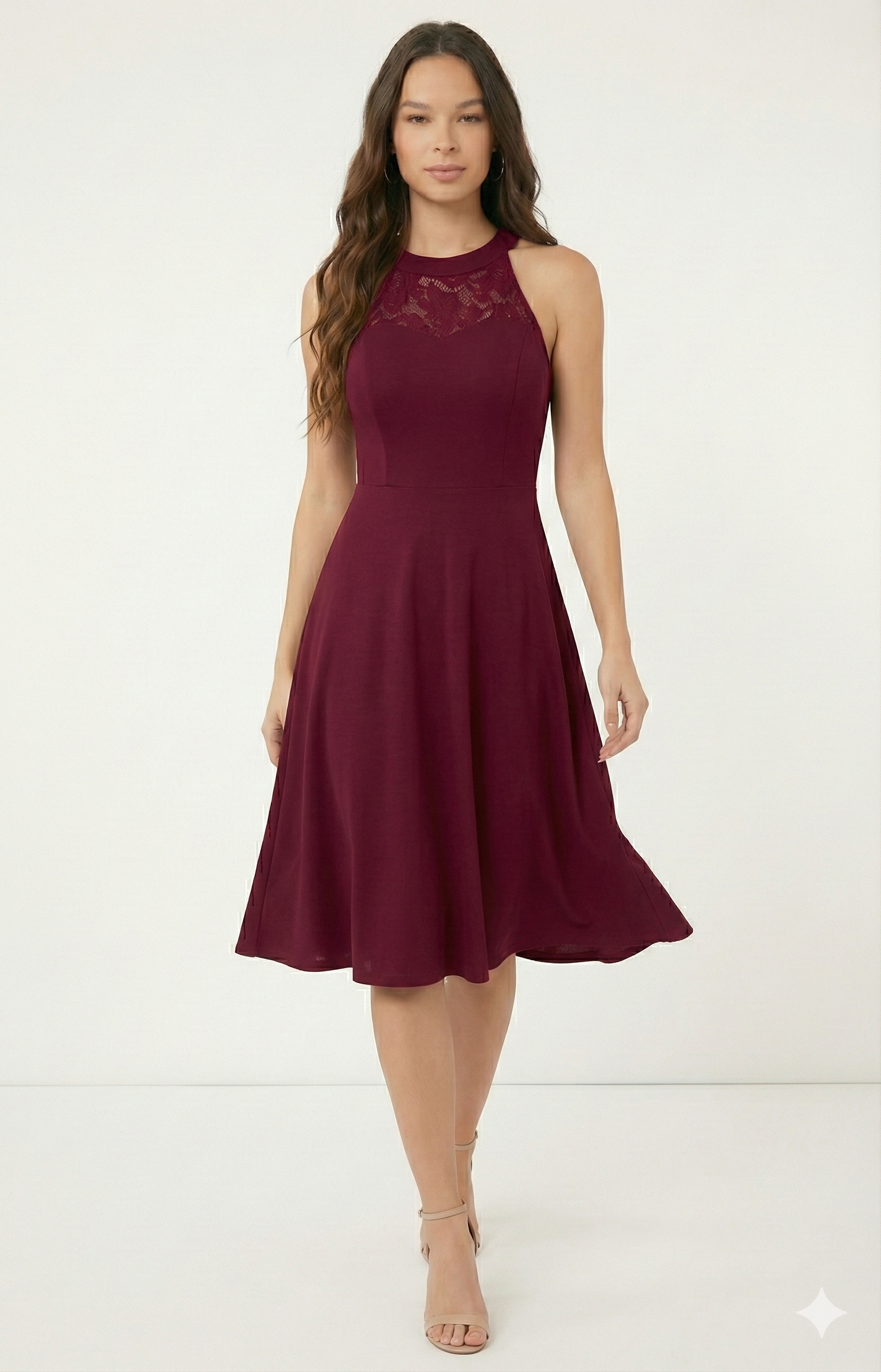 Découvrez notre robe bordeaux élégante à dentelle, l'alliance parfaite entre raffinement et féminité. Sa coupe patineuse flatteuse met en valeur toutes les silhouettes, tandis que la dentelle délicate au col apporte une touche de distinction. La couleur bordeaux profonde et la jupe évasée créent un mouvement gracieux qui sublime vos jambes, parfait pour vos événements importants et soirées.