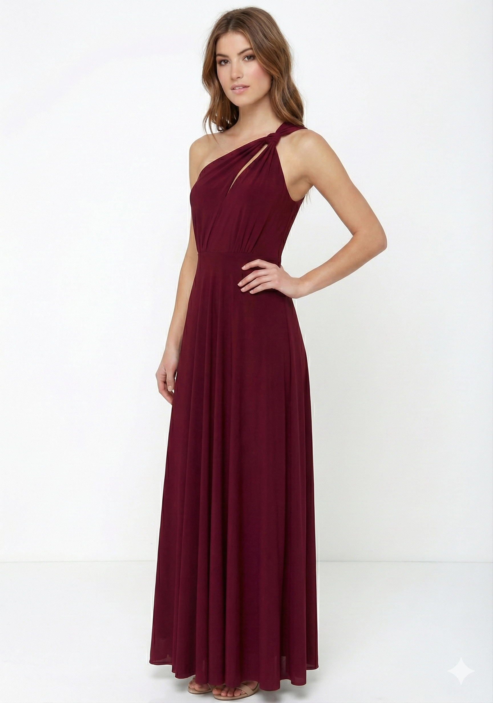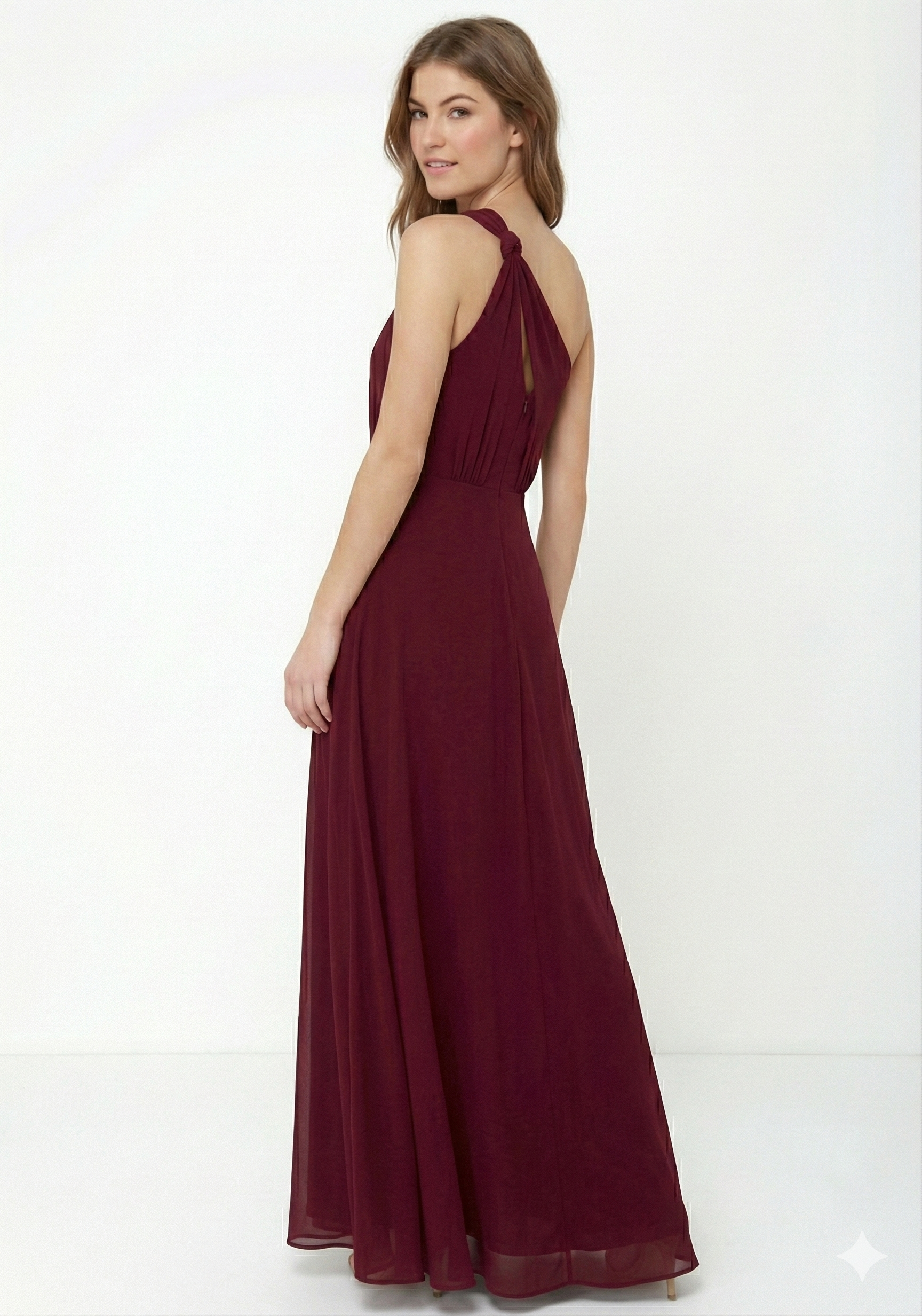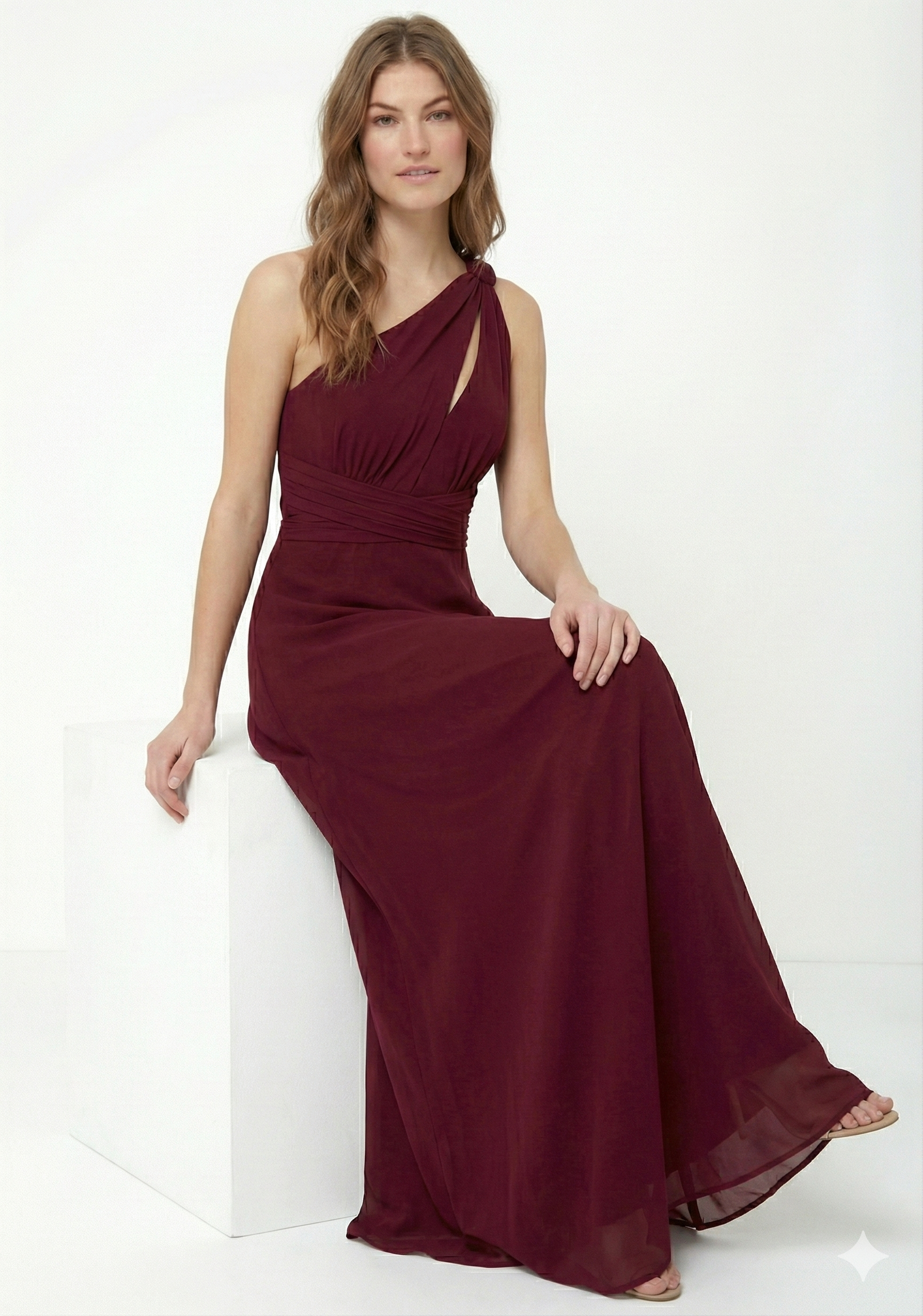 Cette robe élégante est conçue avec un satin extensible de haute qualité qui vous garantit un confort optimal tout au long de vos événements. Sa coupe flatteuse avec taille marquée sublime toutes les silhouettes, tandis que sa teinte bordeaux intemporelle et flatteuse pour tous les teints vous assure d'être élégante en toute saison.